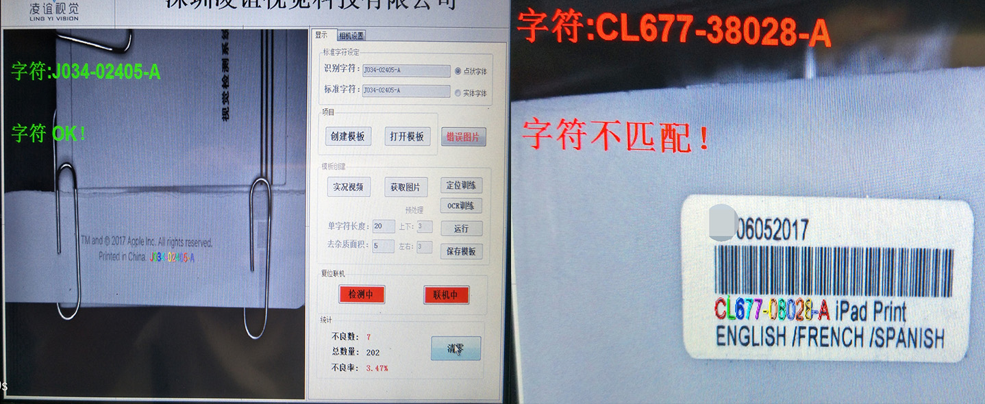 本字符識別系統(tǒng)常用于配合產(chǎn)品外包裝或產(chǎn)品說明書單頁上的字符識別防混,通過對料號字符的識別實(shí)現(xiàn)防止錯料混料的發(fā)生。系統(tǒng)可適用于手工線或自動線,具有識別速度快、準(zhǔn)確率高的優(yōu)點(diǎn),有助于提高客戶良品率及生產(chǎn)效率。杜絕不良品流出導(dǎo)致的產(chǎn)品召回。